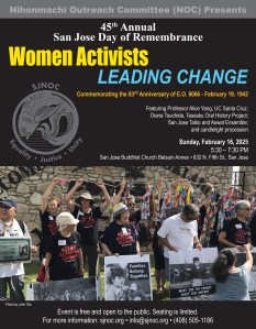Speakers Diana Tsuchida, Professor Alice Yang, Bekki Shibayama, and Keiko Tachibana (WRA camp survivor); Performances by San Jose Taiko and Aswat Women’s Ensemble