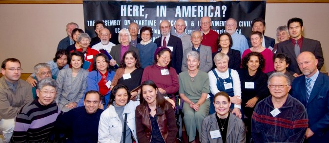 Here, In America? The Assembly on the WWII Relocation and Internment of Civilians was a 2-day public testimonial event held in San Francisco at Hastings College of the Law on April 8-9, 2005. This historic grassroots public education forum focused on the personal testimonies of US citizens and immigrants of Japanese, German and Italian ancestry in the US and from Latin America, who are yet to receive proper acknowledgement for the violation of their civil and human rights due to American policies during World War II. The stories of individuals who were interned in Department of Justice camps and Army facilities as part of the enemy alien program were told, along with testimonies of Muslim and Arab Americans who faced similar violations following 9/11. This project involved 64 participants, over 80 volunteers and staff, and 23 endorsing organizations. A proceedings booklet and DVD were produced and distributed to all members of the U.S. Congress and staff of the Inter-American Commission on Human Rights in 2006. The historical information, statements, and insights continue to be significant for current day challenges.