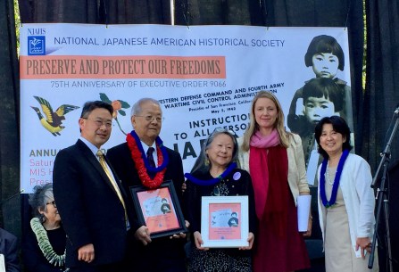 Art Shibayama and Grace Shimizu were honored with National Japanese American Historical Society awards for their enduring quest for justice at the MIS Historic Learning Center, Presidio of San Francisco.