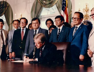 On August 7, 1979, U.S. Senators Daniel Inouye, Spark Matsunaga, and S.I. Hayakawa introduced S.1647 to establish the Commission on Wartime Relocation and Internment of Civilians (CWRIC) to investigate and determine whether any wrong was committed by the U.S. government against those American citizens and permanent resident aliens affected by Executive Order 9066, and for other purposes. On July 31, 1980, President Jimmy Carter signed the bill to create the CWRIC.