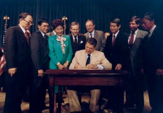 On August 10, 1988, the Civil Liberties Act of 1988 was signed by President Ronald Reagan, mandating apology letters and payments of $20,000 to an estimated surviving 60,000 surviving U.S. citizens and legal permanent residents of Japanese ancestry and the establishment of a public education fund.